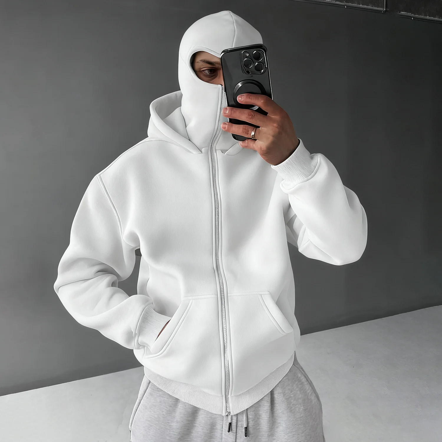Casual Zipper Mask Hoodie
